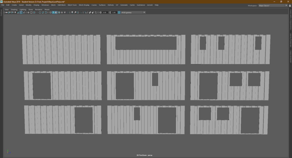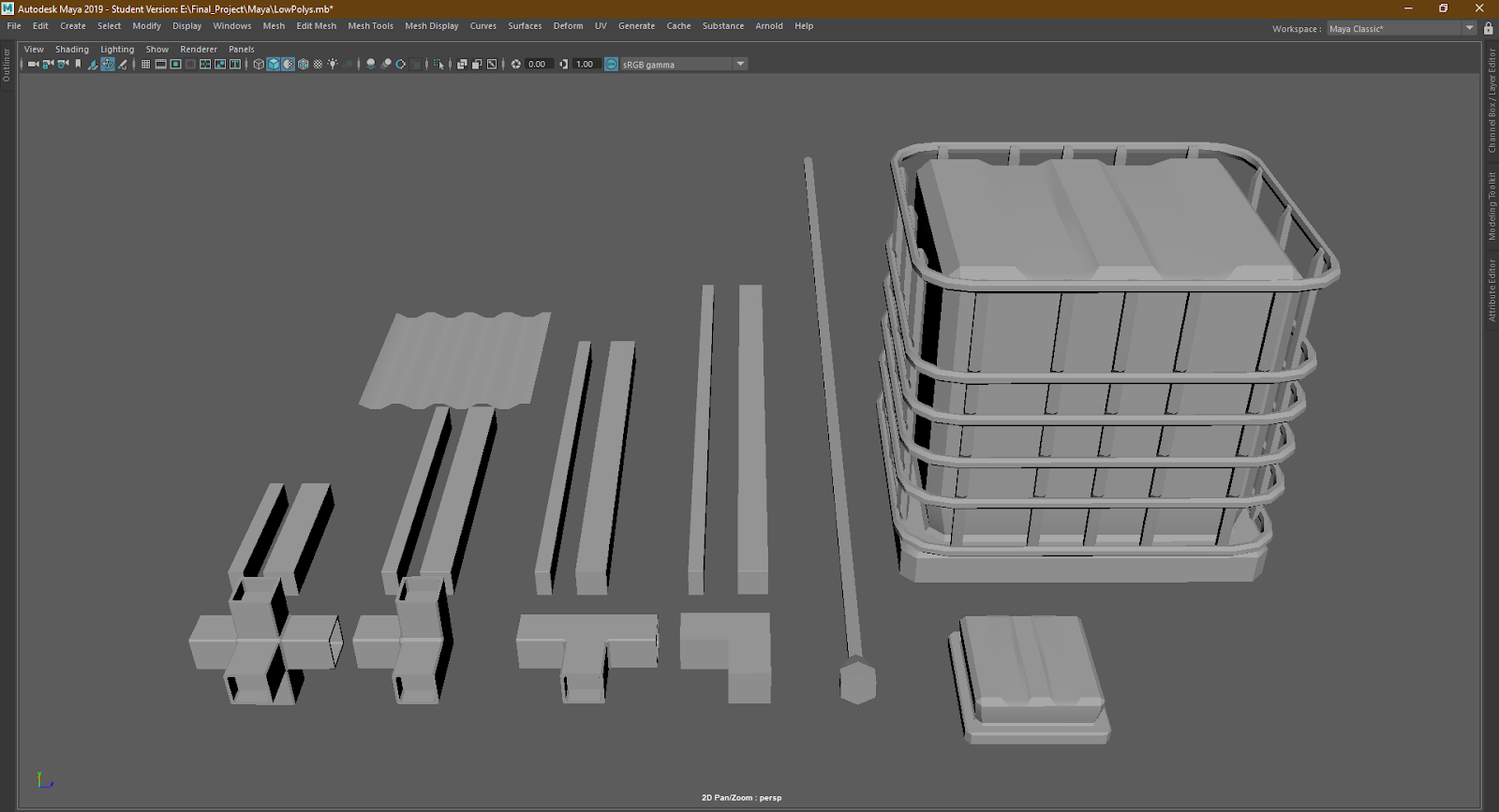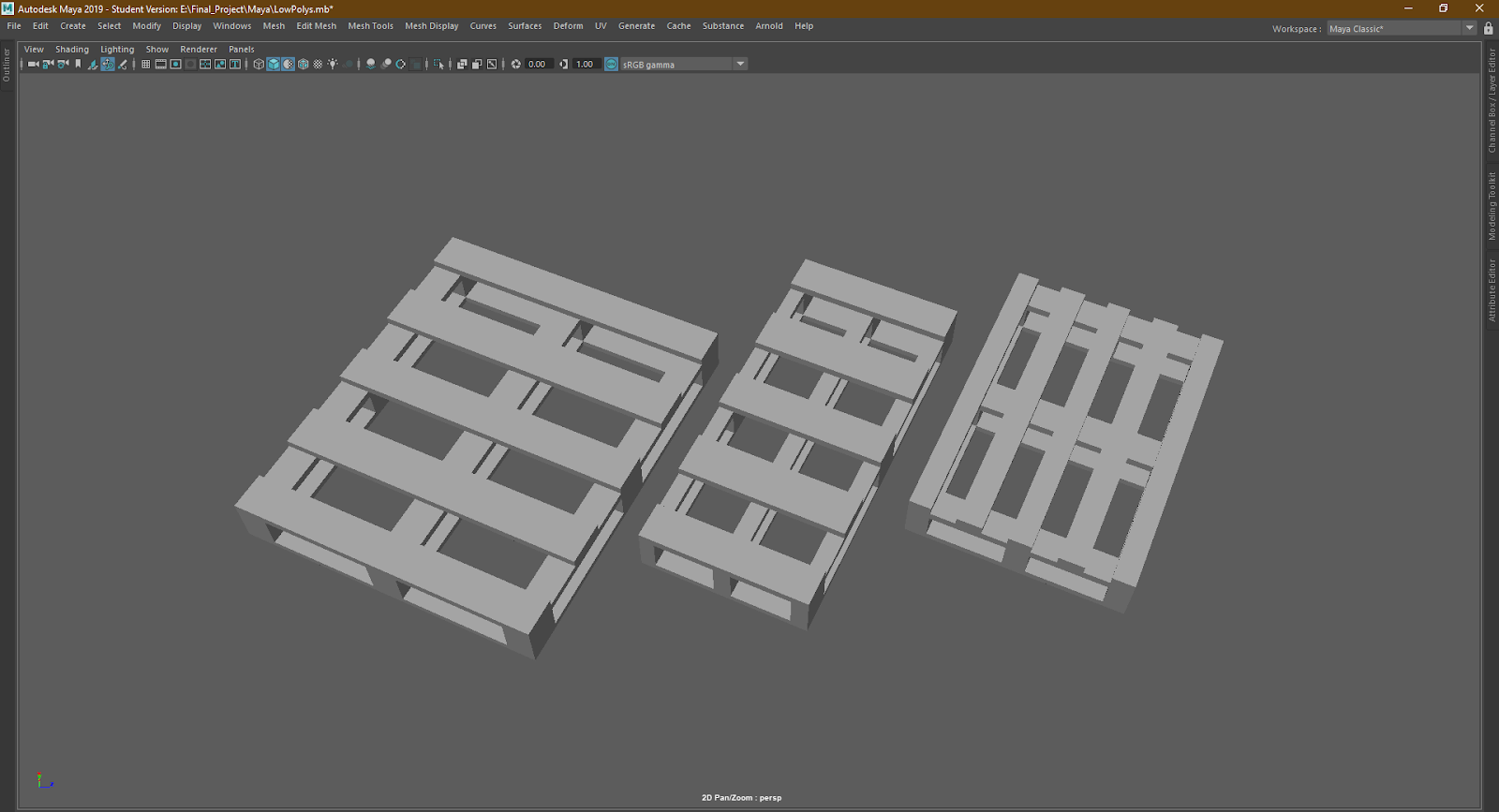 This week I began work on the modeling for all of the main ‘modular’ components of the scene. These are the bulk of my scene which I will build the detail and textures on to.