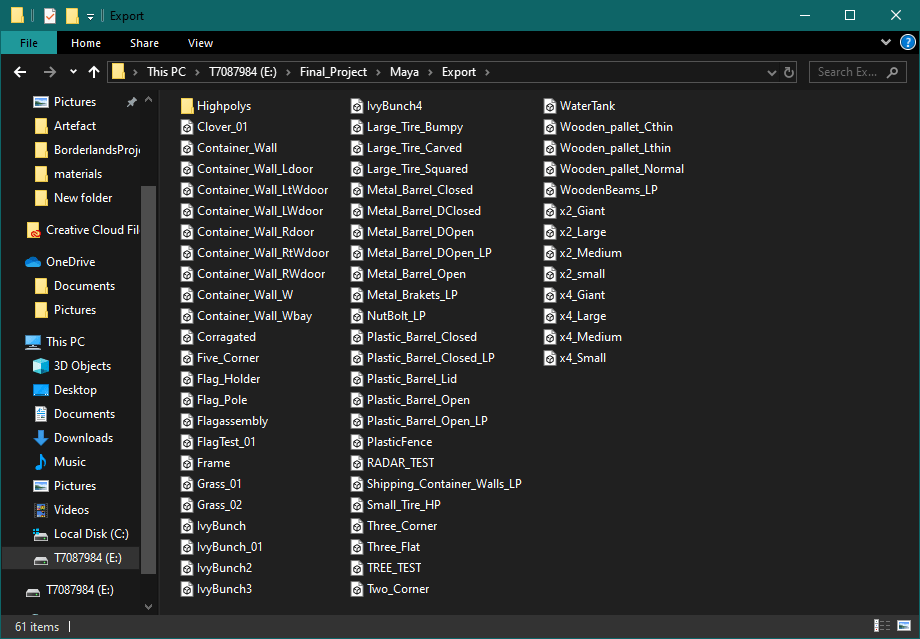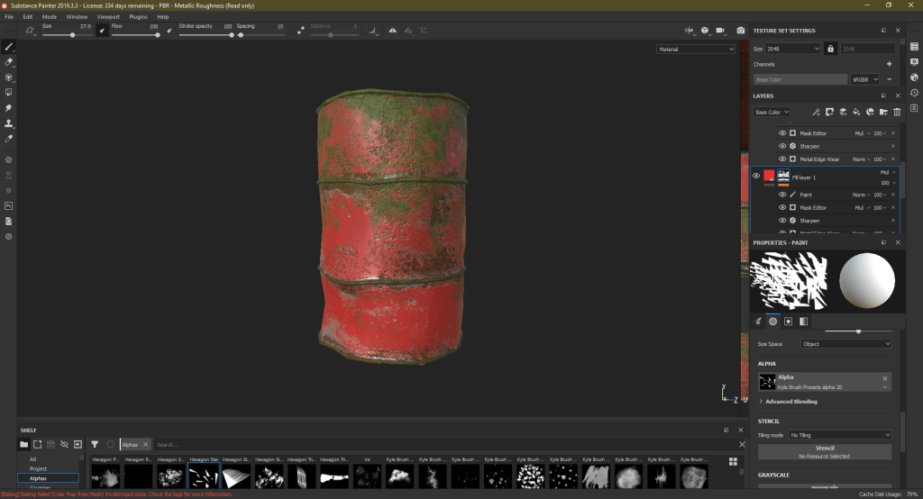 To round this month I began texturing some of my objects baking down high to low firstly then applying my custom smart materials to it. Though I did end up using the smart mask generators provided by substance painter to create a more natural effect.